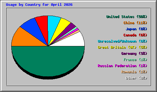| 4 | 18 | 0.41% | 1066 | 13.01% | /stats/usage_202601.html |